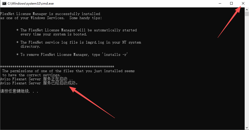 19、出现【服务已经启动成功】,点击右上角【X】。