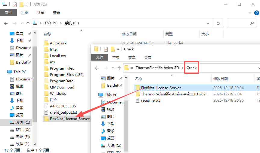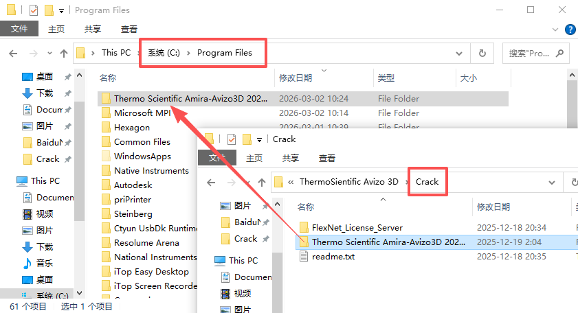 20、接着将【Crack】文件夹下的【Thermo Scientific Amira-Avizo3D 2025.1.1】复制到【C:\Program Files】进行覆盖替换。
