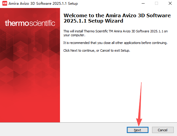 1、双击运行【AmiraAvizo3D-202511.exe】程序安装文件。