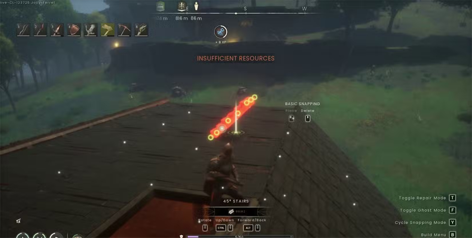 要摧毁建筑,你需要切换到修复模式,然后在瞄准建筑时按下删除键才能删除它。之后,你就能收集地上的所有物品。