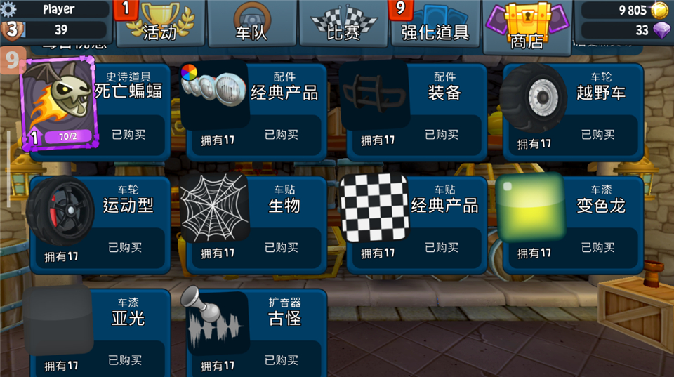 4、点击道具或个性化改装,可以选择你喜欢的配置点击购买后;