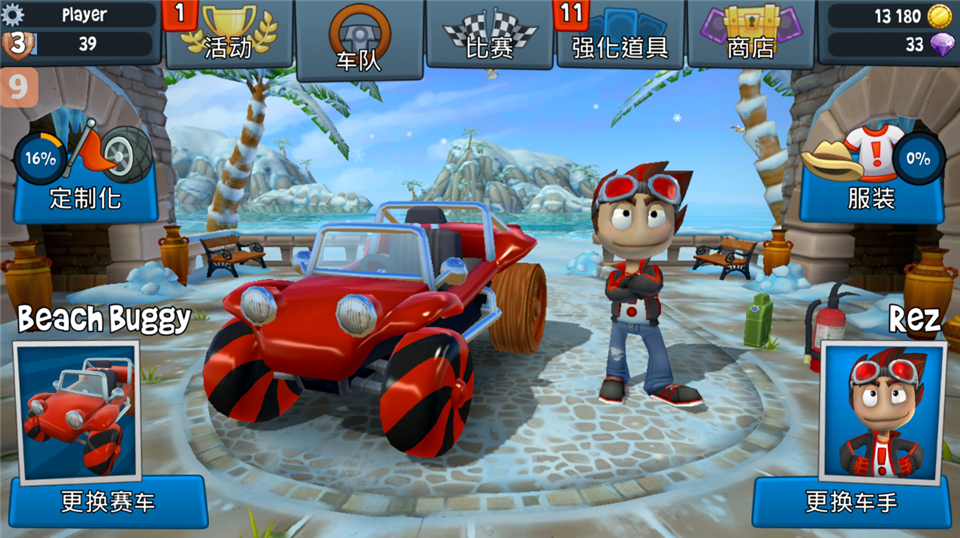 Beach Buggy Racing是一款越野风格的全3D卡丁车竞速游戏,采用Vector Engine和NVIDIA的PhysX技术,拥有惊人的物理效果、精美的车辆和角色,以及各种令人叹为观止的武器。让玩家在移动平台上享受主机般的游戏体验!