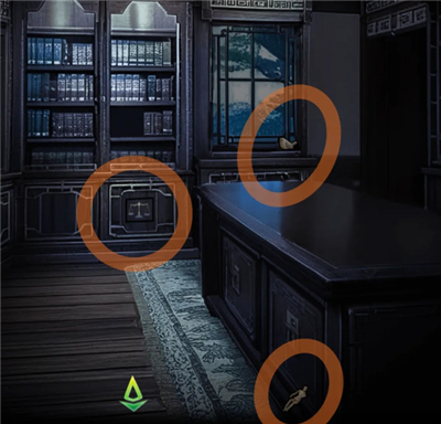 捡起地上的木偶,获取窗台上的木鸟,点击书柜下的天平图案,将砝码放上去