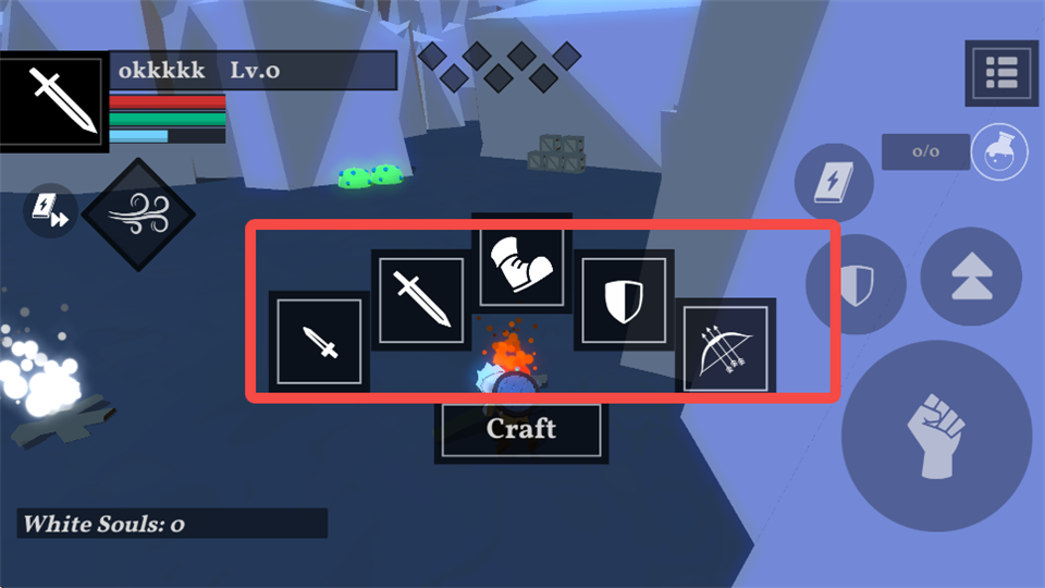 关于武器升级,你需要找到红色火焰并点击“Craft”图标,在弹出的菜单里选择要升级的武器即可。切换武器也很简单,只需要点击右上角的图标就能快速更换装备。玩的时候要注意操作技巧,灵活使用位移技能躲避或攻击怪物,同时记得在地图上寻找更多道具和装备来增强自己的实力。