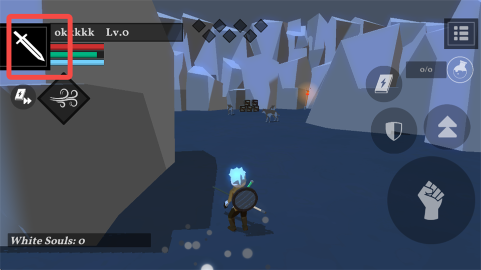 1、目前我们使用的武器是长剑,点击右上角图标。
