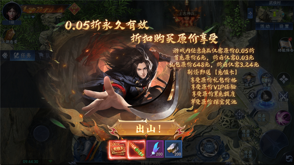 5、【折扣福利】:0.05折高爆版本重磅来袭,商品永久低价,开局体验江湖新篇章!