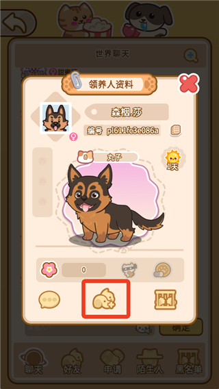 2、点击右上角的【+】号,输入好友的ID编号点击放大镜图标搜索,再点击猫狗图标添加即可。