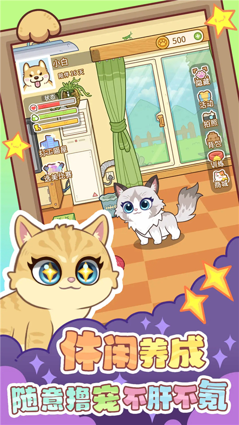 《云爪星》是一款以养宠为核心的放置类休闲游戏,玩家可以选择小猫或小狗进行“云养宠”,并能训练宠物完成坐、趴、跳、摇尾巴等指令,还可以和爱宠一起玩耍、旅游。游戏的桌面陪伴功能特别有意思,开启悬浮窗后,宠物可以长期陪在你身边,还能设置大小、喂食喂水,感觉就像真的有只小可爱在家一样。