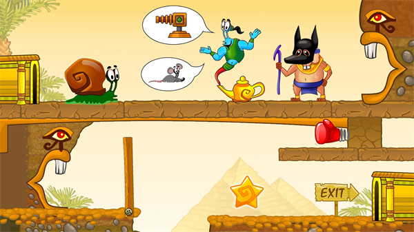 好险埃及青蛙、飞毯和神灯精灵会帮助您。老木乃伊魔术师蜗牛是最后大魔王。用他的力量对抗他,并获取胜利完成此章节!