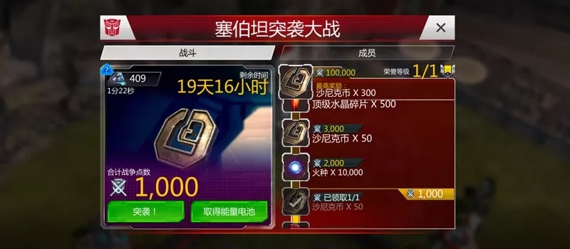 3、在取得能量电池的同时,还会根据攻打的活动战区获得额外的多倍经验哦