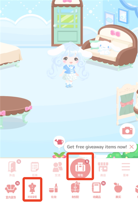 1、点击下方的【背包】,选择【时尚穿搭】。