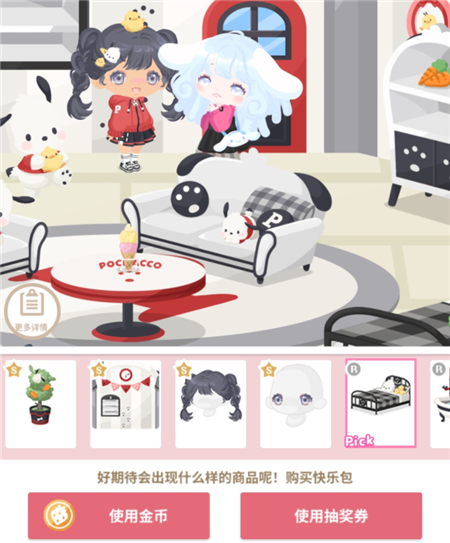 3、点击其中一套,你可以使用金币或者抽奖券获得,也有可能会出现家具。