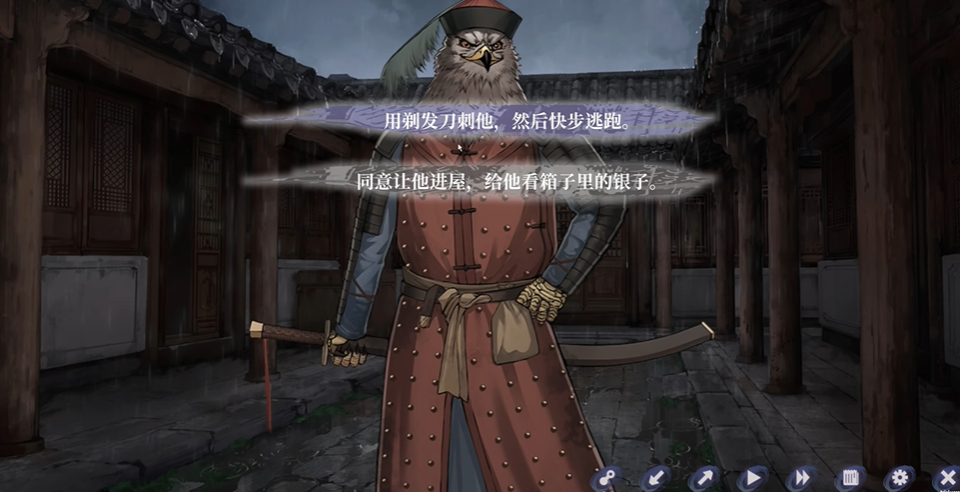 (1)触发关键:面对鹰妖时,选择用剃发刀正面刺杀鹰妖的操作,会因书生战力不足直接触发 “死于鹰妖(一)” 的死亡结局;此外若选择错误的周旋、贿赂方式,也会触发该系列鹰妖相关死亡结局。