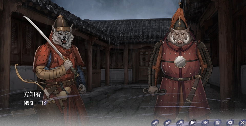 继鹰妖看守区域后,玩家带领小雁儿逃亡至城郊/巷陌的狼妖巡逻段