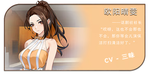 欧阳晴雯是土木专业的话剧社社长,热爱戏剧演出,也喜欢写剧本。一直对自己太公(曾祖父)真正身份带有好奇心。
