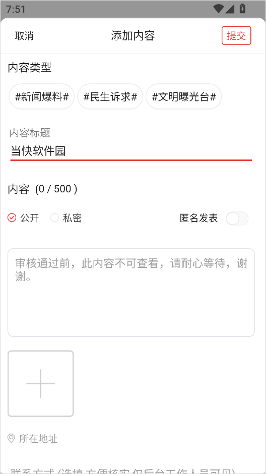 4、输入爆料内容,并上传相关图片,确认无误后点击【发布】,即可完成爆料提交。