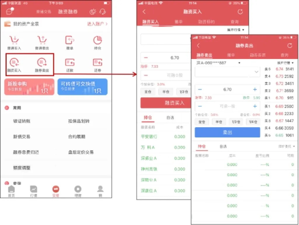 ●功能路径:底部交易-选择顶部融资融券-普通买入/普通卖出