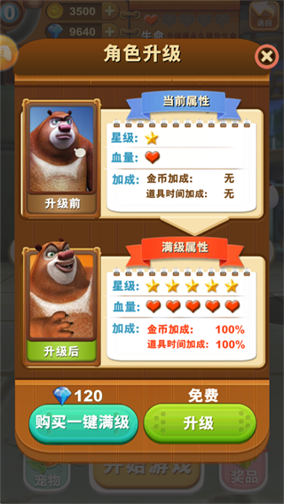 • 可解锁:熊二(50西瓜)、光头强、美熊王、宇航熊、功夫熊大、厨师强等