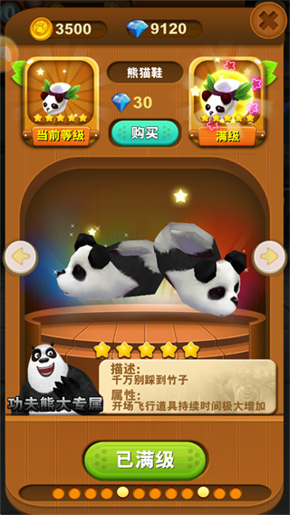 每一位角色可以获取并升级自己的专属跑鞋来达到强化道具的时间或得分金币的加成。