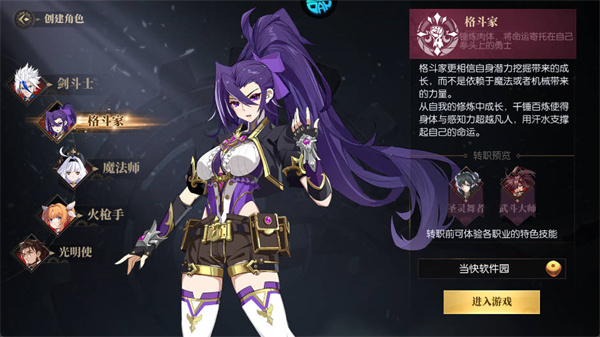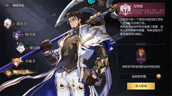 游戏中有五大职业:剑斗士、格斗家、魔法师、火枪手和光明使。剑斗士以强大的体魄和剑术闻名;格斗家依靠自身潜力挖掘成长;魔法师掌控自然力量,使用法术装备战斗;火枪手则擅长使用火器,展现出独特的战斗风格;光明使是信仰光明的骑士团,致力于镇压星君势力。