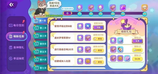 为了协助初来乍到的馆长更快上手经营,还会开展【萌新任务】、【最佳馆长】活动,跟着任务一点点熟悉餐馆的经营规则吧!