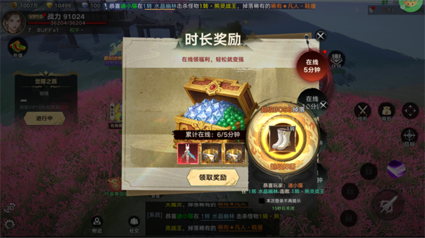 保持在线,领取时长奖励,同时关注“超级BOSS”活动,挑战BOSS可获得1转装备、稀有材料等丰厚掉落。