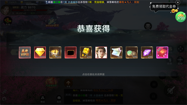 进入游戏后,先领取创角赠送的直升VIP10、9999金钻、100万金币、橙色伙伴及各类珍稀道具,直接解锁VIP特权,大幅提升初始战力。