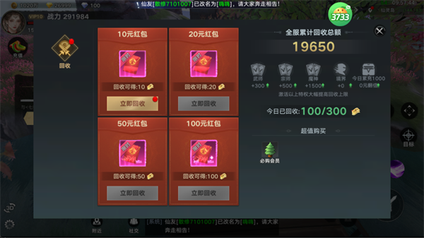 游戏里有打金系统,杀BOSS或者完成任务就能拿到红包,还能用代金券兑换资源,这点设计得很不错,既增加了游戏的趣味性,又让玩家有动力一直玩下去。尤其是对于新手来说,这种快速提升战力的方式真的很友好,不用花太多时间去肝材料。
