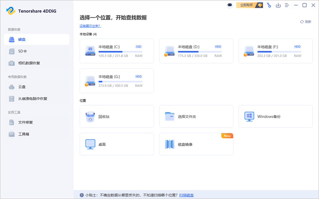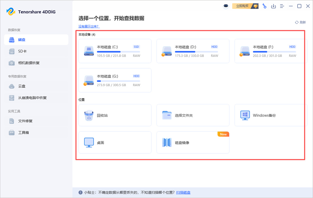 有时,您可能会突然发现其中一个分区丢失,无法在Windows文件资源管理器中看到。丢失的分区对计算机用户来说可能是一个噩梦,因为这通常意味着丢失存储在该分区中的重要数据。然而,有了4DDiG Windows数据恢复工具,用户可以轻松地从丢失的分区中恢复数据。