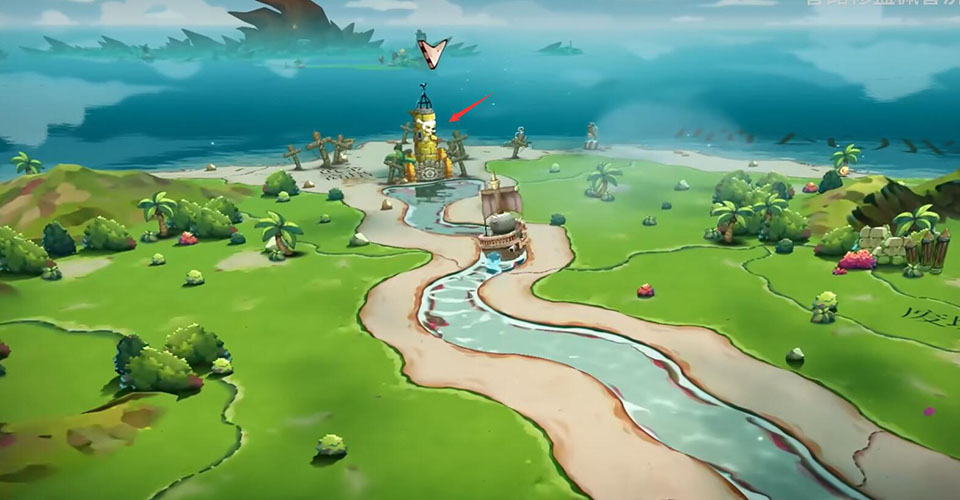 1、先在喵瓦那平原北边使用船只炮将黄金高塔附近的阻碍清掉;