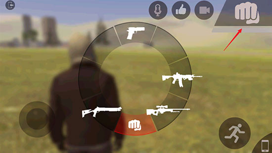 4、点击游戏右上角的拳头即可切换武器;