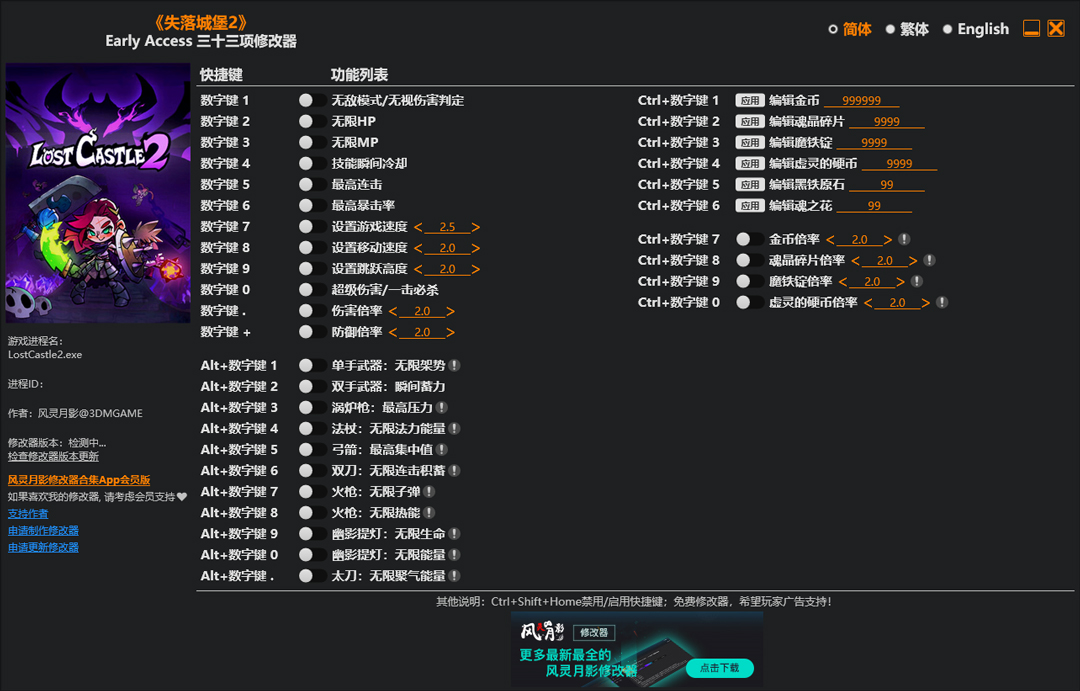 失落城堡2修改器快捷键功能