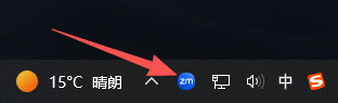 2、确保Zoom客户端已启动,在Windows任务栏右下角的通知托盘(系统托盘)中找到Zoom图标。