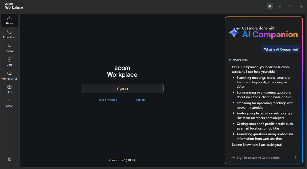 软件功能分为实时沟通、提高生产力和支持远程办公三大类。比如Meetings适合开视频会议,Team Chat可以即时聊天,Phone在线通话也挺方便。Docs和Whiteboard这些在线协作工具让我觉得特别实用,尤其是Docs可以多人一起编辑文档,省时又高效。Rooms和Workspace Reservation这些功能对混合办公的支持也很到位,感觉特别贴心。