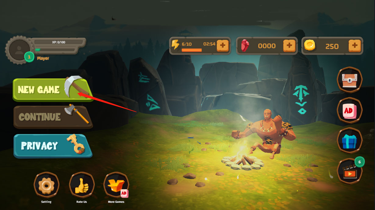 新手玩法的话,进去后点击NEW GAME就开始冒险了。左边控制人物移动,右边是奔跑、击打、跳跃。碰到牛牛顶撞的时候,可以敲击它。根据指引完成任务,每完成一个任务都能获得奖励,之后就要靠自己了。