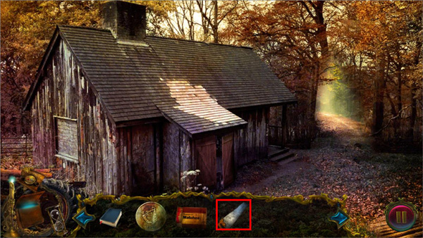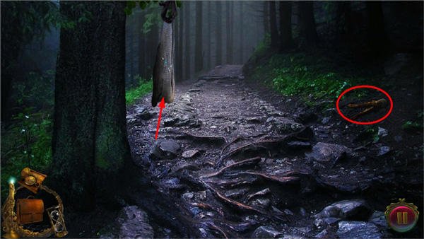 2、接着来到森林里面可以看到一个麻袋出现,但没有工具拿不到的,可以从旁边拿到剪刀;