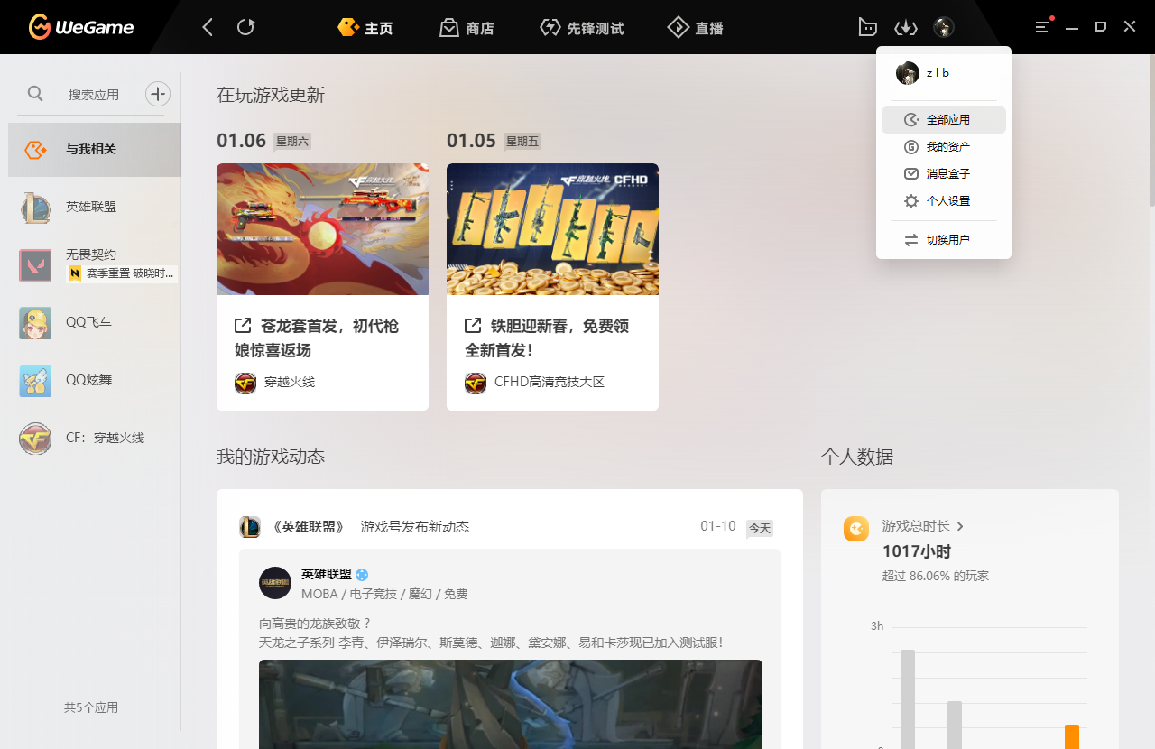 打开WeGame点击右上角的头像,然后会弹出下拉菜单框,选择里面的“我的游戏”即可进入查看。