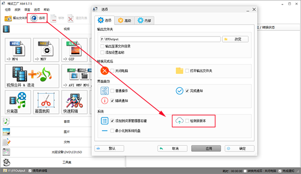 4、然后我们在选项设置中,关闭掉自动检测新版本