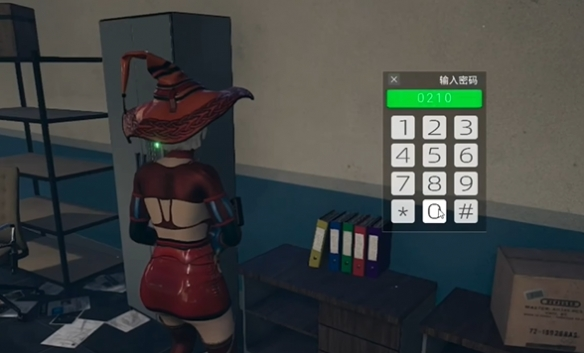 密码是0210,进门后,左侧墙上的照片翻过来有提示。