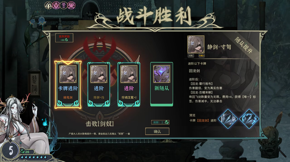 - 铺场还是站场:战斗然后变强,尸姬大人可以为战斗中表现优异的随从赐下祝福,大幅提升随从的基础数值,解锁其更为强力的技能分支,也可以获取一个全新的单位,提供更多的出手机会。