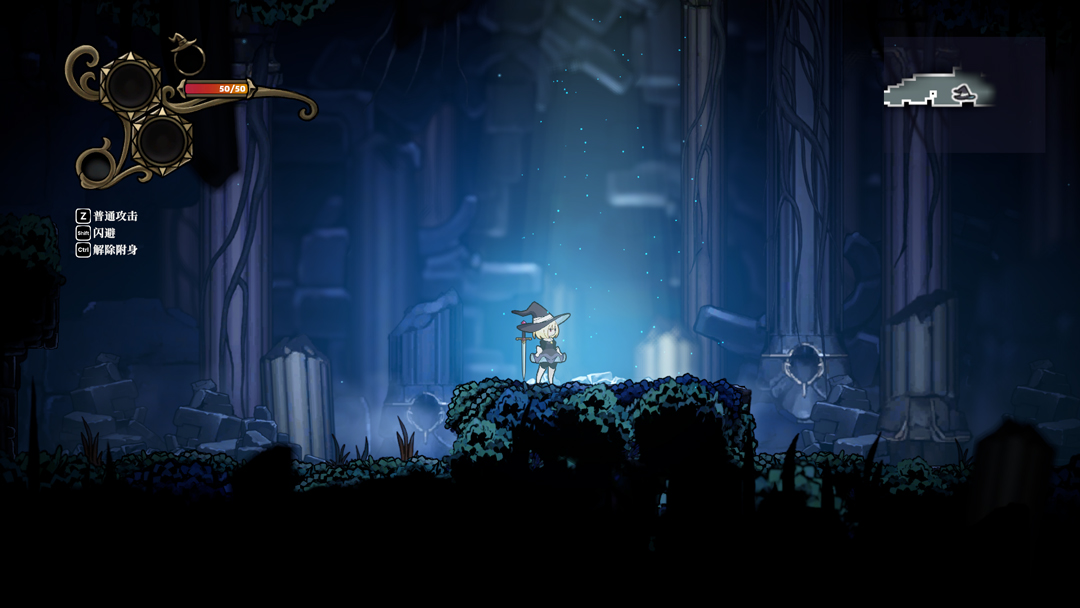 「不寐之境:女巫与魔咒」是一款与被诅咒的帽子一同冒险的2D动作游戏。