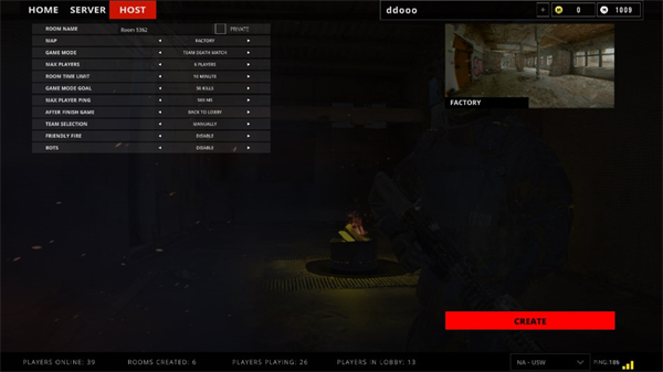 2、在host选项中创建一个房间,输入房间名以及地图等信息。