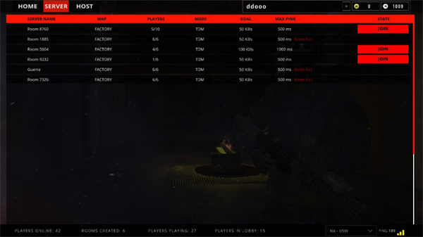 1、首先打开游戏,在server选项栏中找到房间加入其中。