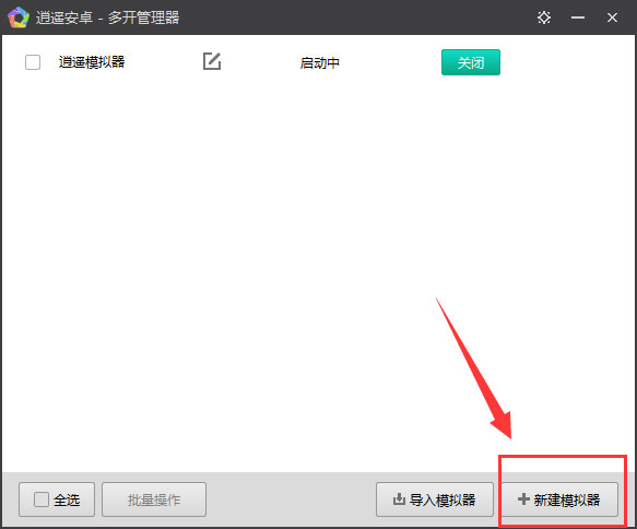 5、打开逍遥安卓多开管理器后,点击界面右下角的【新建模拟器】选项。