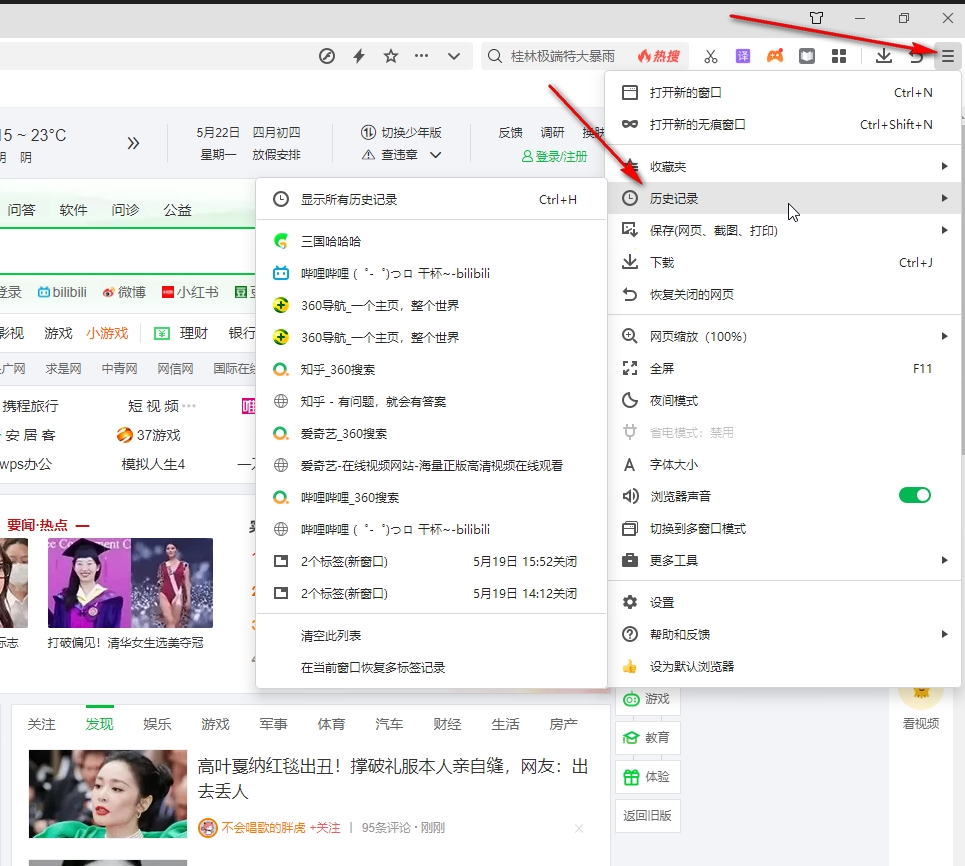 第二步:方法1.按Ctrl+shift+N键,或者在界面右上方点击如图所示的三条横线图标后选择“打开新的无痕窗口”;