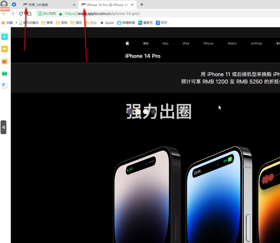 第五步:方法2.在界面下方状态栏点击如图所示的无痕浏览图标进入无痕模式,如果底部没有显示状态栏,可以在界面上方空白处右键点击后勾选显示状态栏调出来,后续在右上方点击查看历史记录时没有浏览方法苹果官网的痕迹。