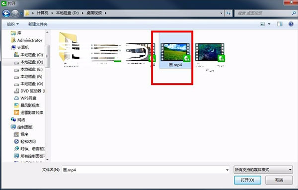 2、在弹出的选择视频文件的窗口,选择要导入的视频,其实这里也可以直接拖动视频到播放器里;
