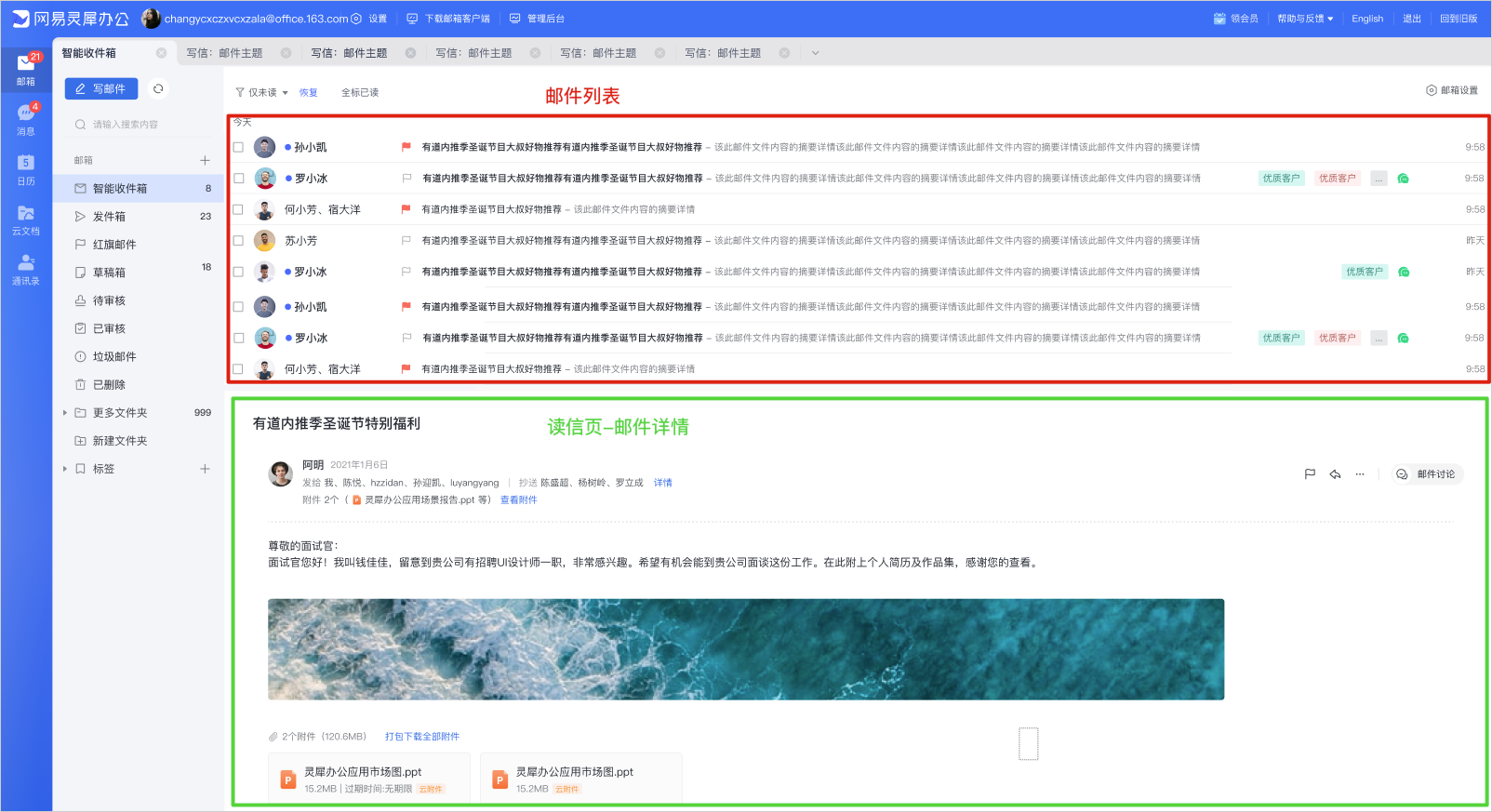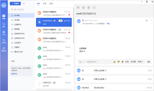 邮件标签、快捷回复等功能,帮助智能管理邮件,邮箱多重安全保障让邮件收发稳定安心。
