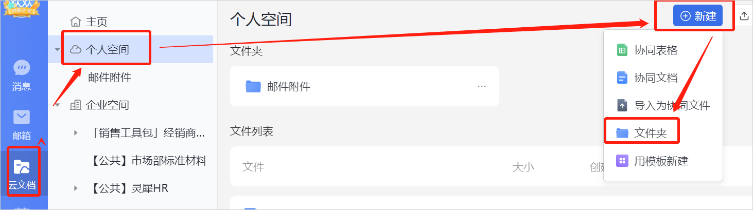 1、个人空间新建文件夹:在【云文档-个人空间-新建】中支持建立多级文件夹;
