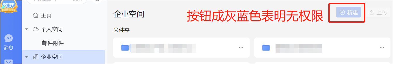 2、企业空间新建文件夹:企业网盘新建文件夹需用户具备当前文件夹管理权限;